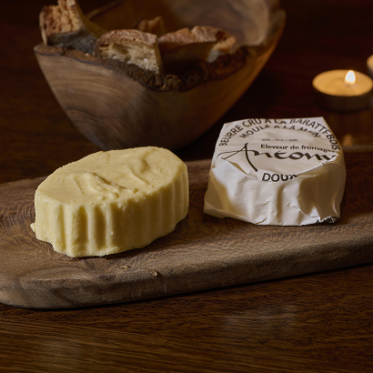 Offrez-vous un plaisir gourmand avec notre beurre cru artisanal, nature ou à la fleur de sel. Riche et onctueux, il sublime tartines et recettes.