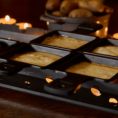 Nous proposons une raclette fermière de Savoie. Mais actuellement également d’autres fromages adaptés, comme un morbier et une tomme de chèvre.